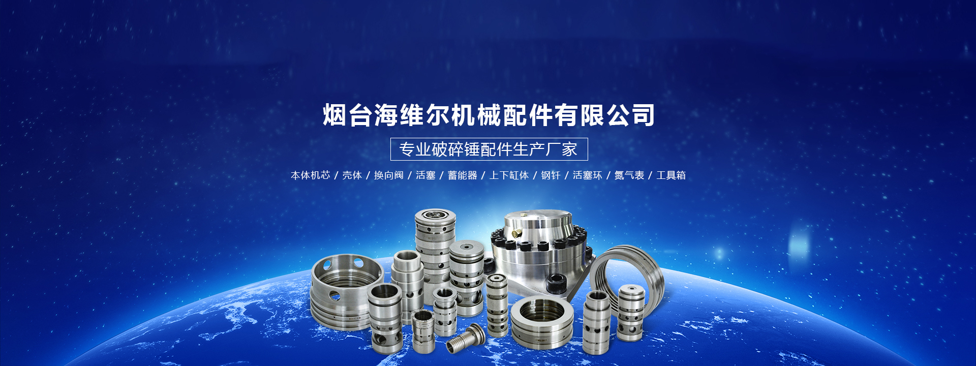 煙臺海維爾機械配件有限公司,專業生產換向閥、活塞環、蓄能器、法蘭、調頻螺絲等破碎錘配件,專業組配油封、密封件、皮碗等橡膠類產品。